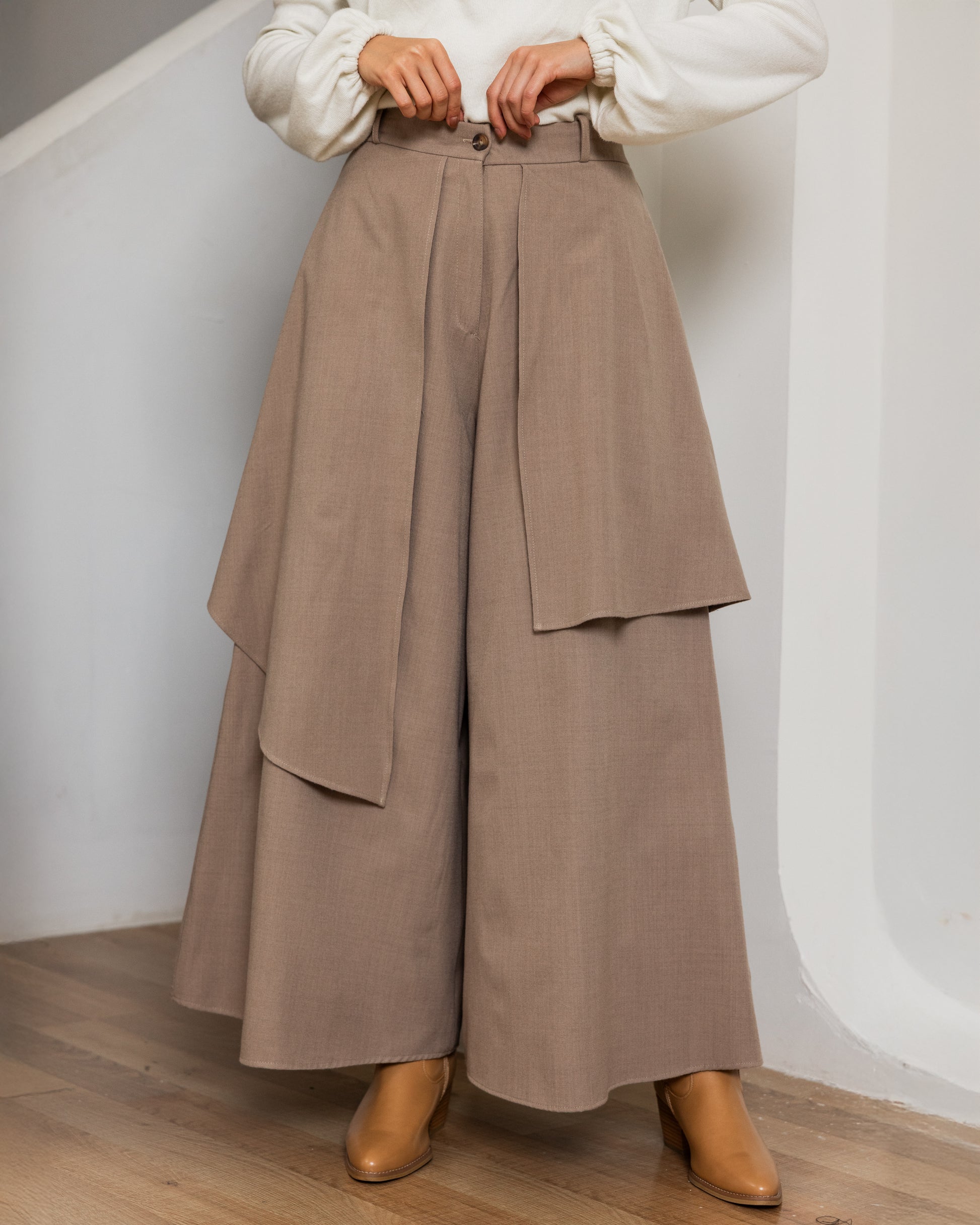 CLASSIC WRAP SKIRT PANTS - CAFE
