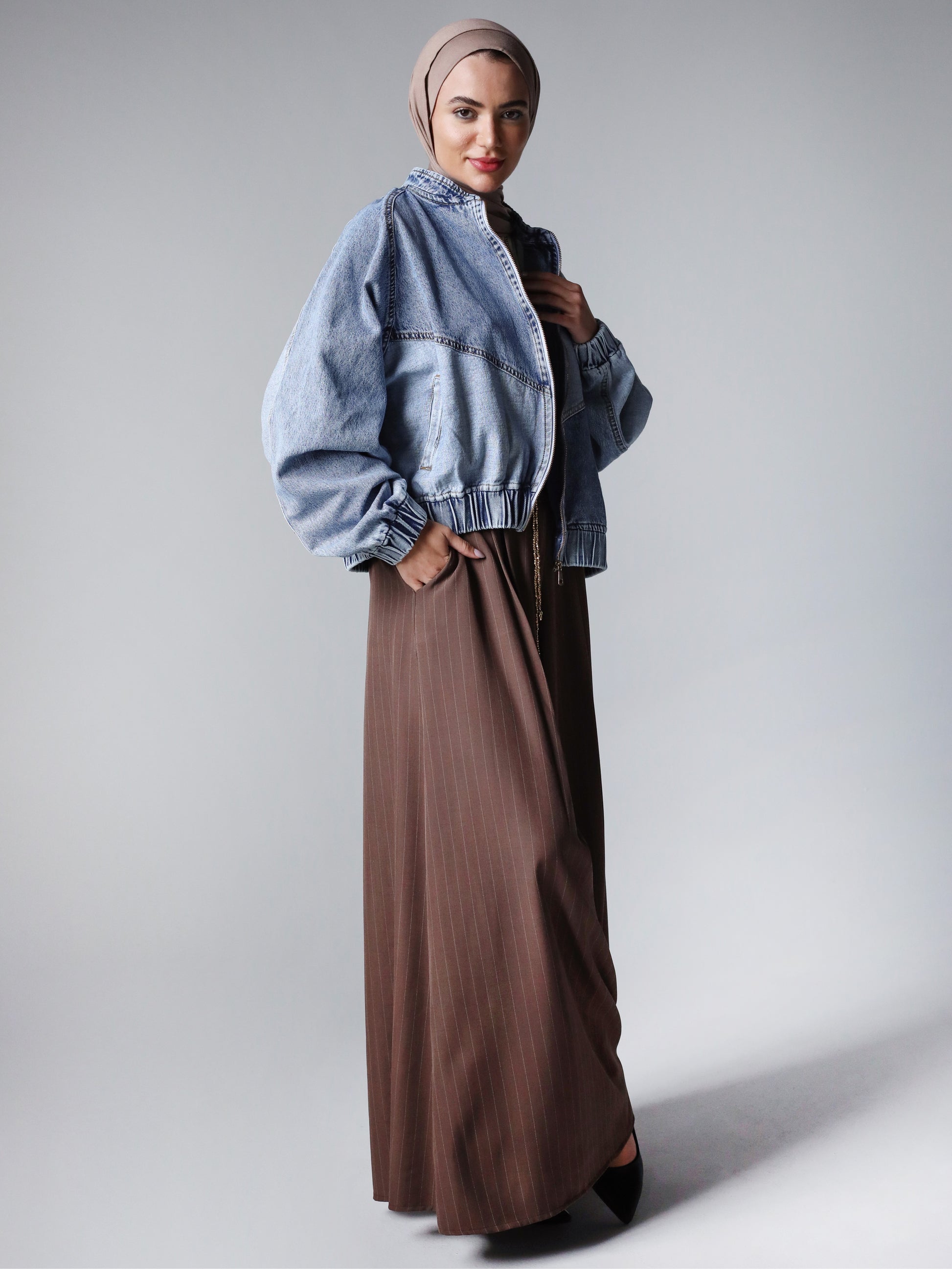 STRIPPED CLASSIC PANTS - BROWN