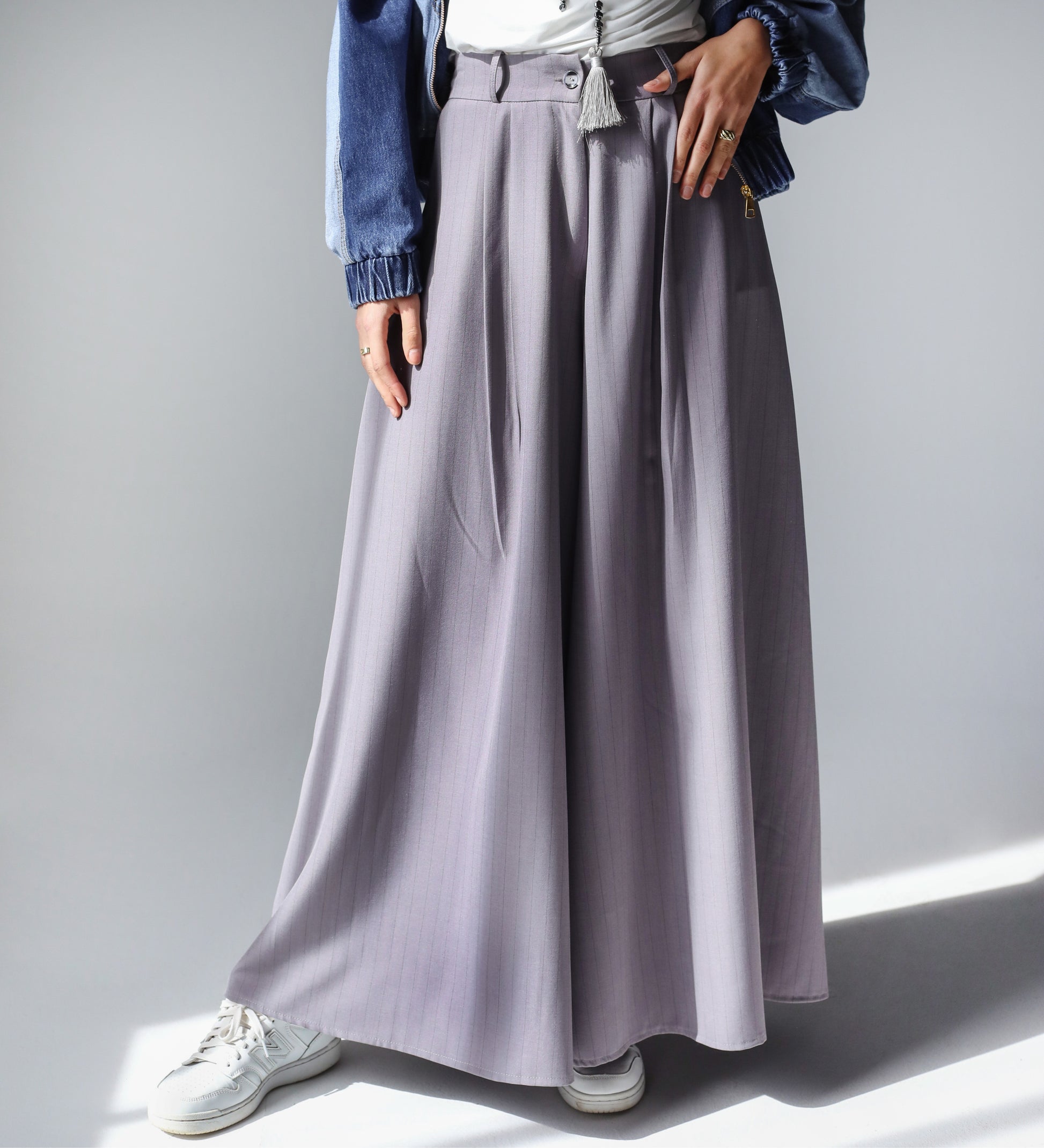 STRIPPED CLASSIC PANTS - GRAY