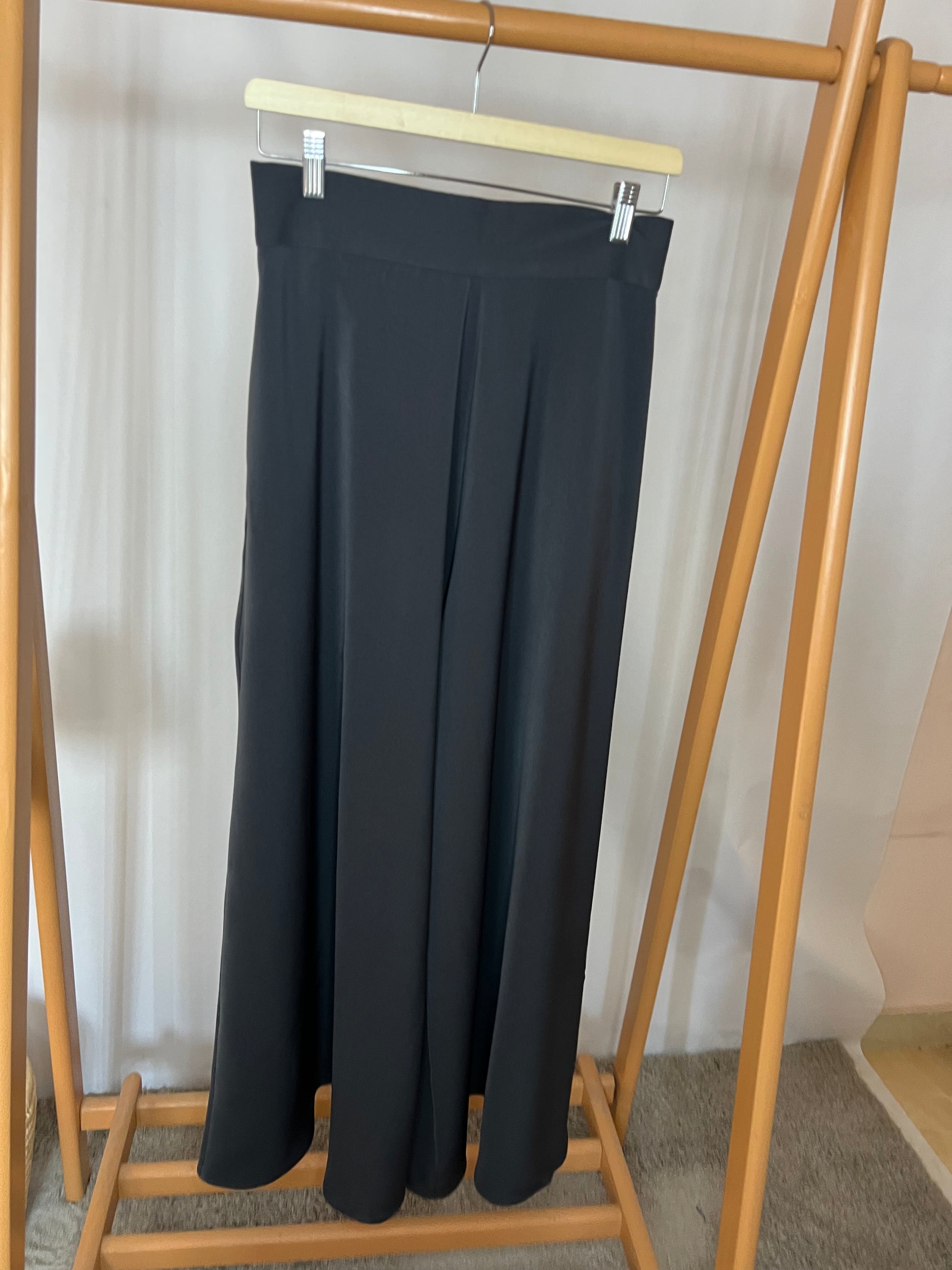 SUEDE CREPE WIDE LEG PANTS - GRAY