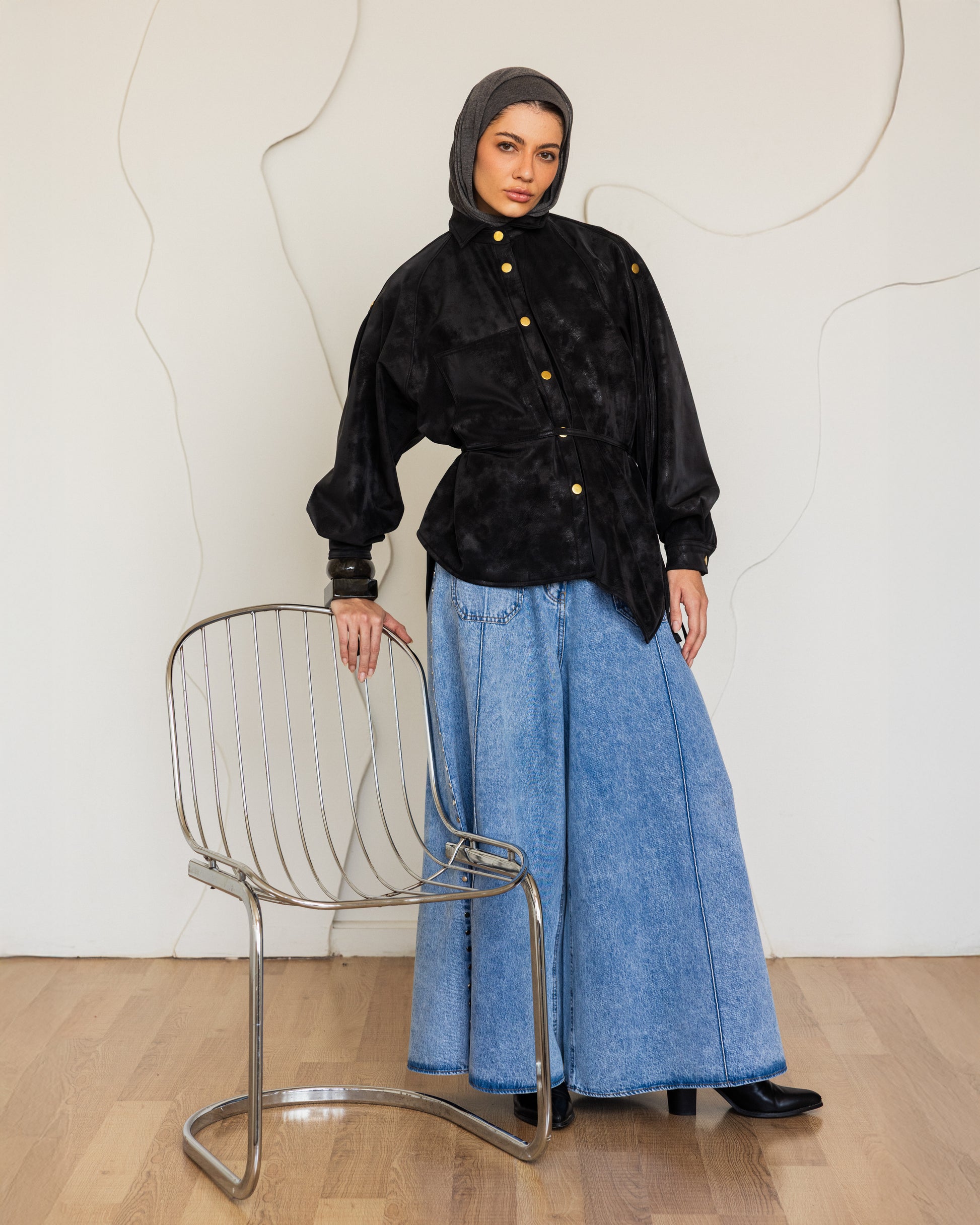 SUEDE EFFECT LEATHER SHIRT - BLACK