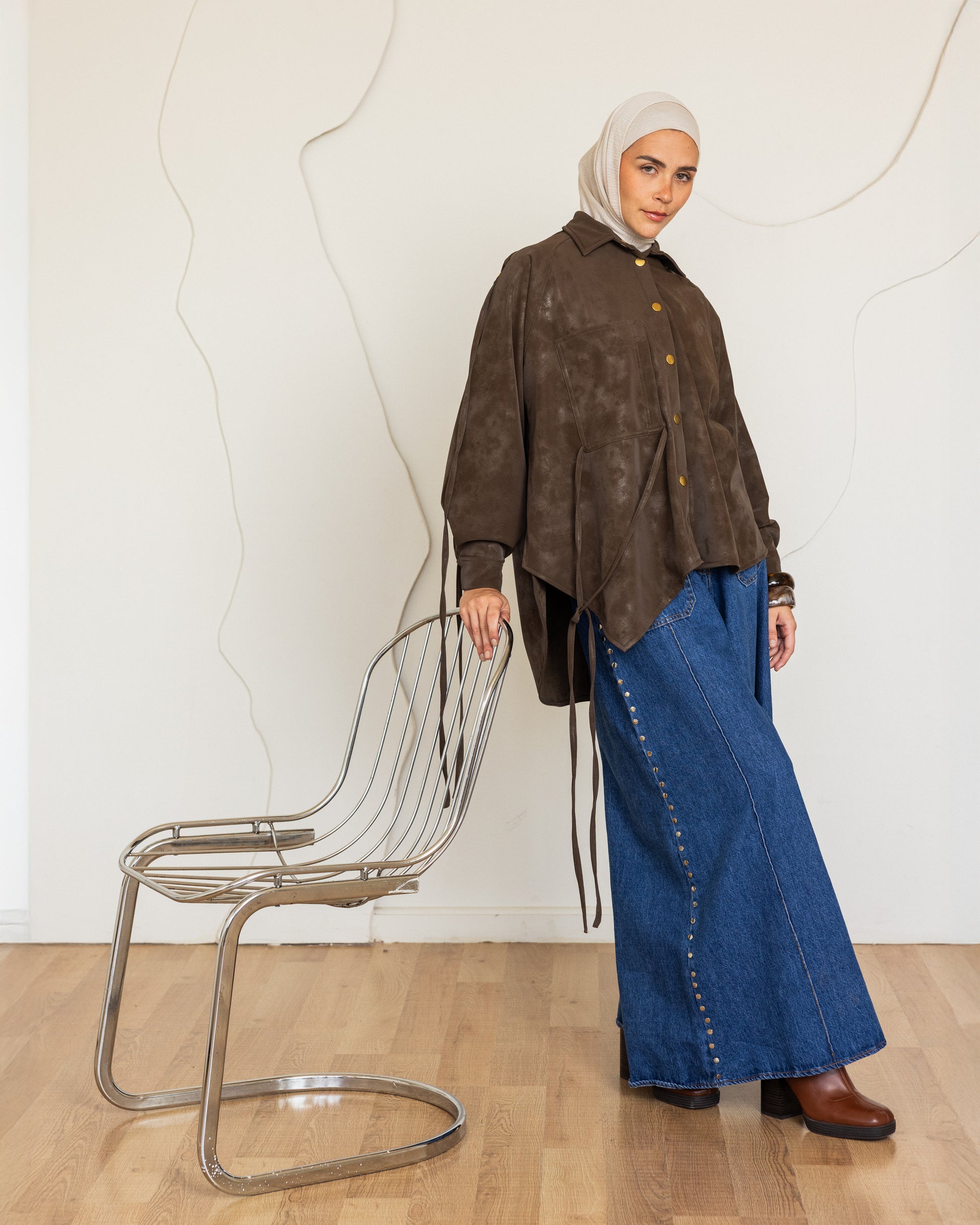 SUEDE EFFECT LEATHER SHIRT - BROWN